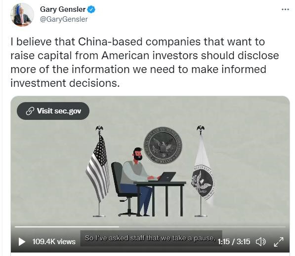 Gary Gensler在視頻中說明,“已經要求美國證券交易委員會的工作人員確保這些公司提供完整和公平的披露,說明投資的實際上是開曼群島的一家空殼公司。”